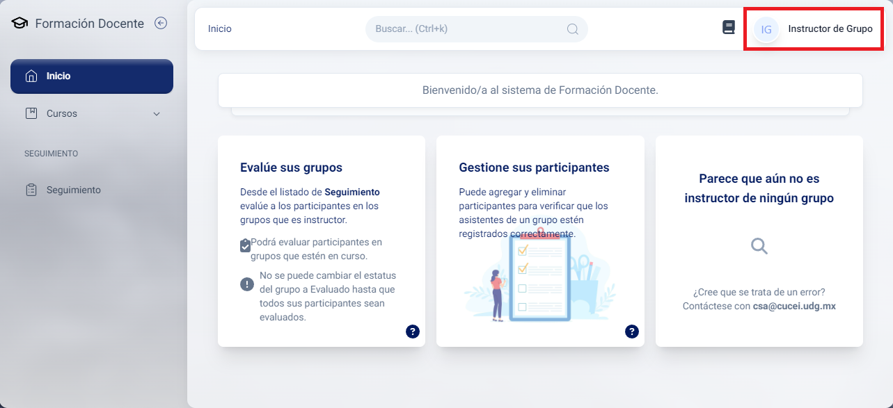 Al hacer clic en este apartado, se desplegarán dos opciones adicionales: Perfil y Cerrar sesión. La opción Cerrar sesión le permitirá salir del sistema.