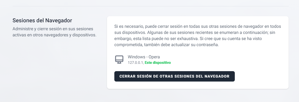 Un poco más abajo, se muestra otra sección para el cierre de sesiones activas con su Perfil, desde aquí puede cerrar todas sus sesiones si lo desea.