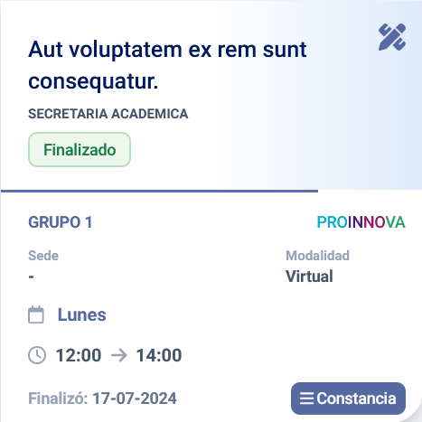 Una vez que el grupo al que un participante está incrito finalice y se le genere una constancia, este aparecerá con una etiqueta de Finalizado y también un botón con el título de Constancia.