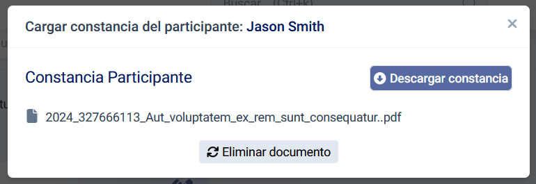 Adicionalmente, el participante puede eliminar el documento lo cual no se recomienda hacer en caso de tratarse de una constancia generada por el sistema.