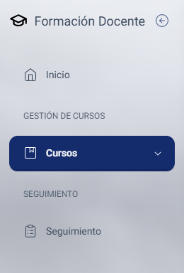 El módulo de cursos tiene la finalidad de recopilar y gestionar todos los cursos registrados en el sistema de los que es autor o figura como responsable.