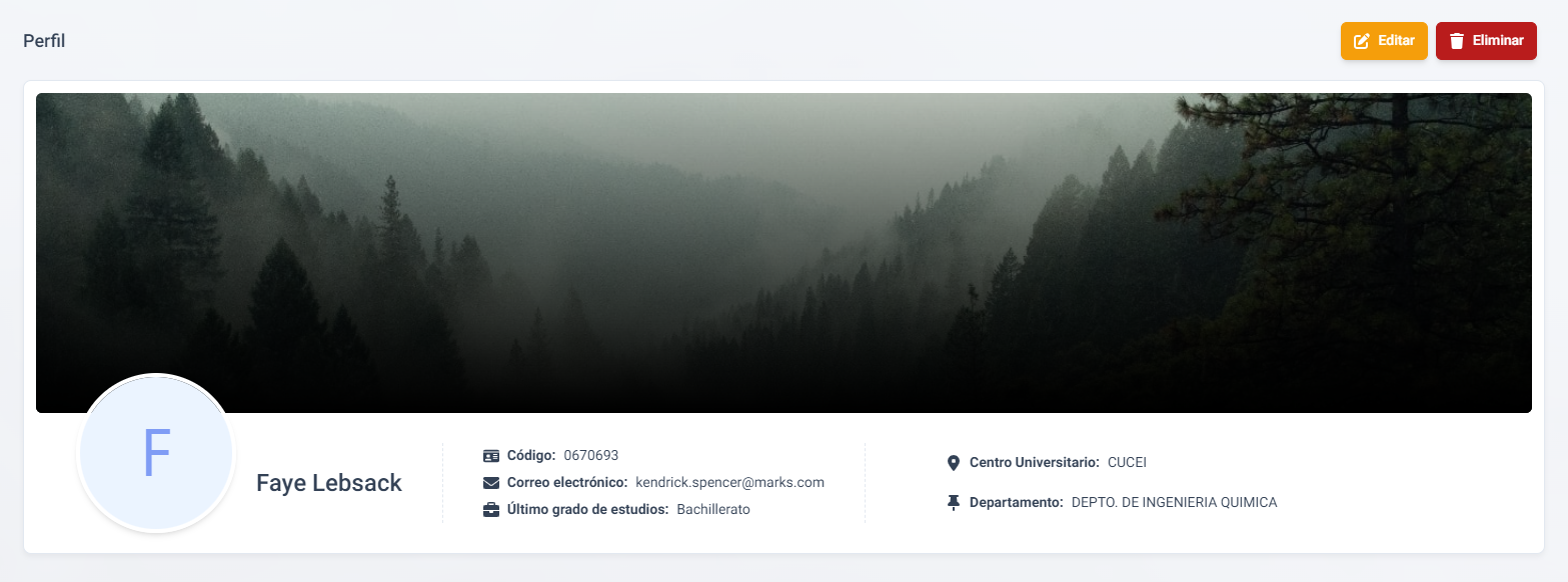 En el detalle de un participante se puede visualizar la información más relevante sobre el mismo.