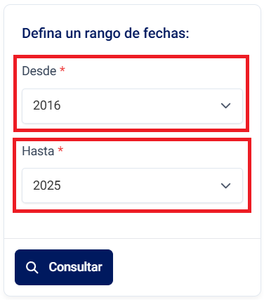 El apartado cuenta un recuadro a la izquierda del gráfico para seleccionar el rango de años a consultar.