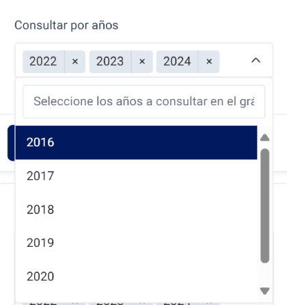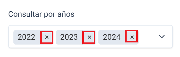 A través del campo para seleccionar los años, es posible deseleccionar dando click a las "X" a la derecha de cada etiqueta: