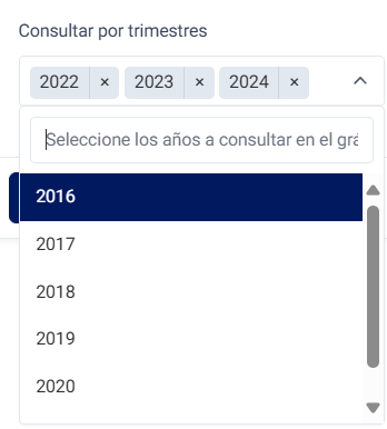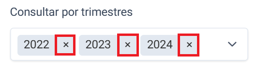 A través del campo para seleccionar los trimestres, es posible deseleccionar todo un año con sus trimestres dando click a las "X" a la derecha de cada etiqueta: