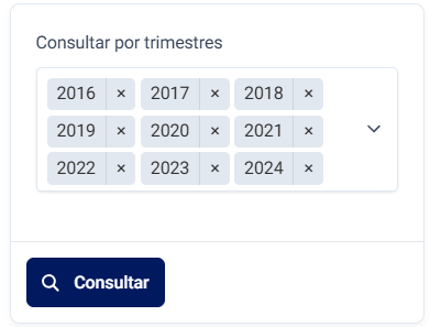 Para consultar por los trimestres (en los años) seleccionados es necesario dar click al botón de Consultar