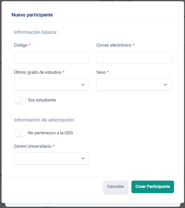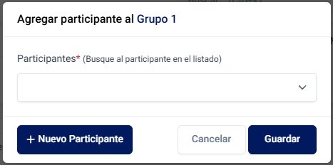 Al presionar el botón Agregar participante, se abrirá una ventana con un selector de participantes.