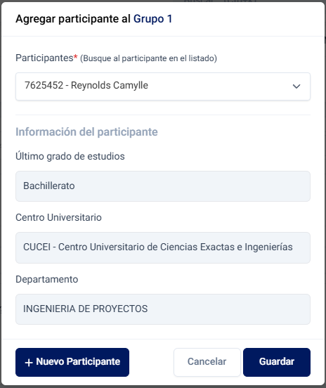 {warning} Solo es posible agregar participantes si el grupo ya fue aprobado.
