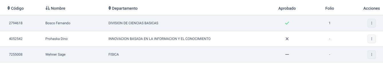 Después de evaluar, el listado de participantes se mostrará de la siguiente manera: