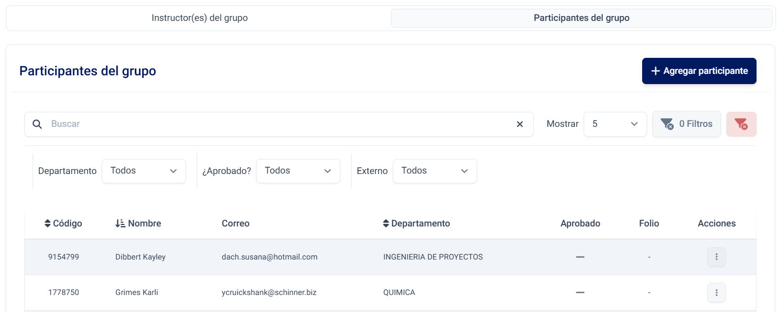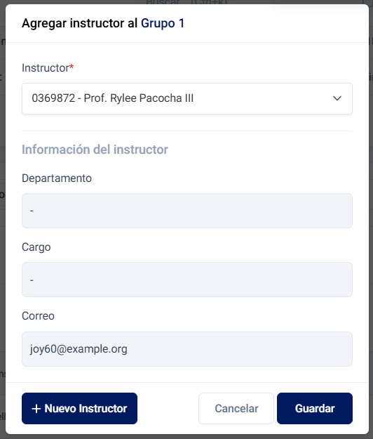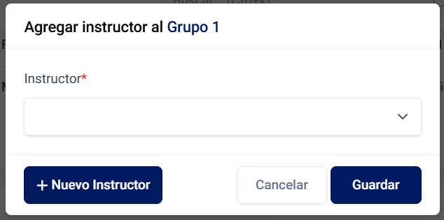 Al presionar el botón Agregar instructor, se abrirá una ventana con un selector de instructores.
