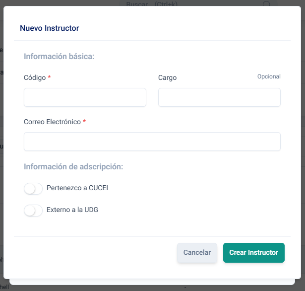 {info} Algunos campos del formulario cambian en función de si el instructor es o no externo del CU.