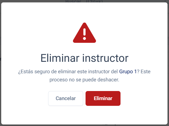 Se abrirá un modal para confirmar la eliminación del instructor del grupo.
