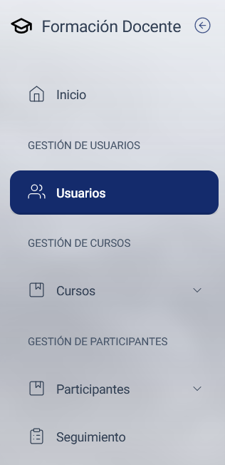Se puede acceder a este módulo mediante el menú lateral que se encuentra en la vista principal del sistema: